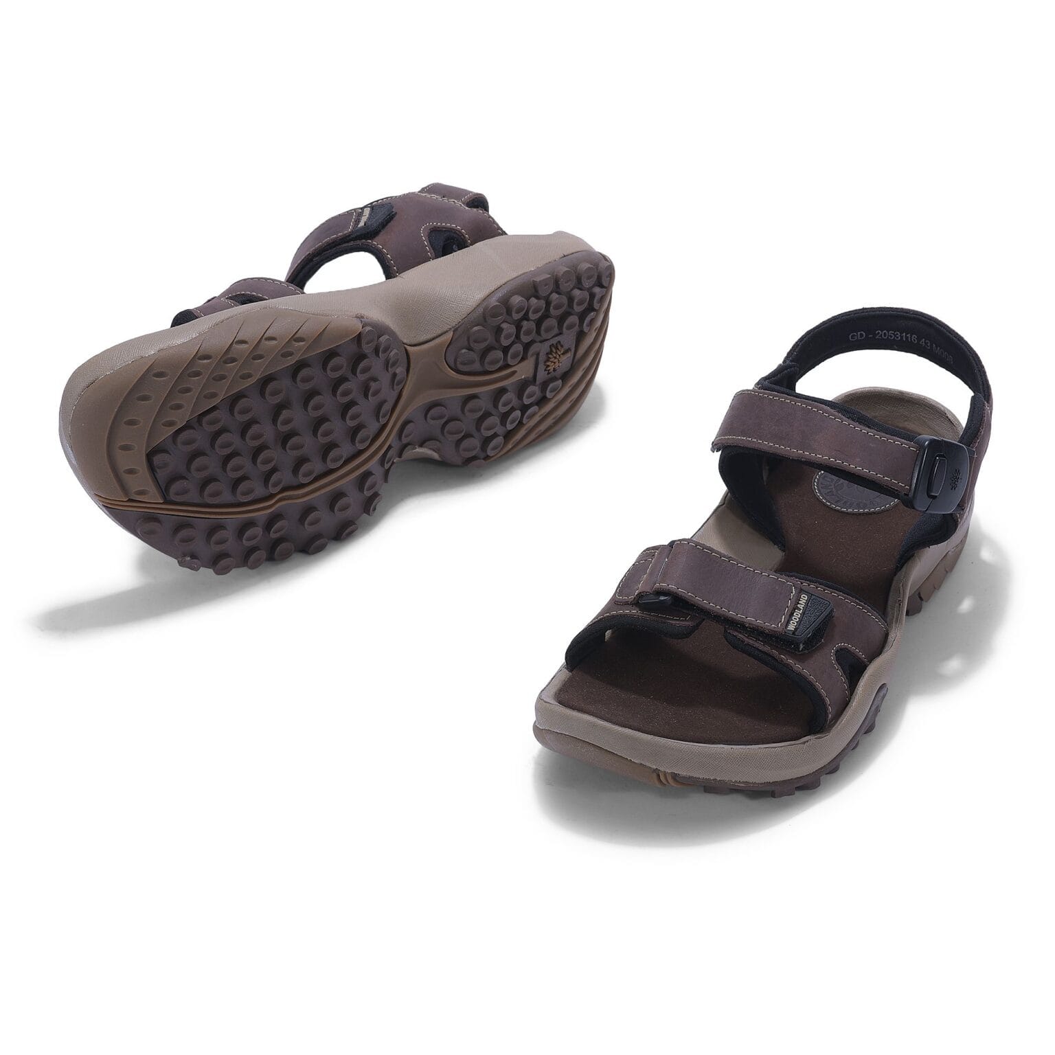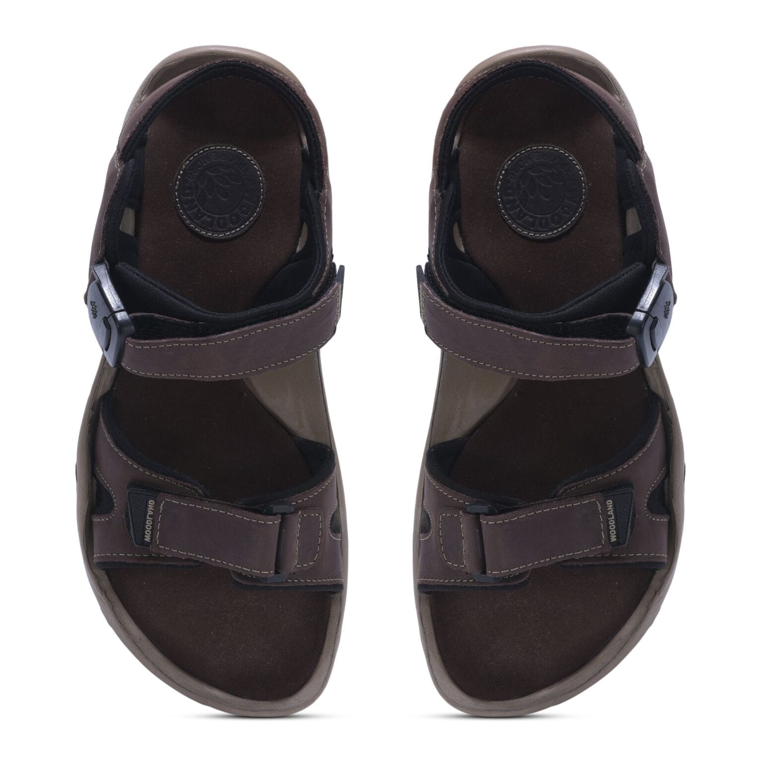 - Snaype coloured sturdy pair of floaters from Woodland. Designed with long lasting nubuck leather in oily matte finish for durability and comfort, these menâs floaters with the thick grooved RPA sole are slip resistant and have an insole sheet offering a cushioned footbed. Featuring adjustable Hook & Loop closure straps that secure the sandal very well and comfortably onto your foot with a push-clip system for additional security.