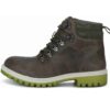 - Khaki colored robust and rugged pair of high ankle casual outdoor activity shoes crafted out of a wear resistant oiled nubuck upper with anti-corrosive metal fittings on top to protect your feet from lace pressure. The grooved PU sole with deep lugs provides an excellent traction on muddy and rocky terrains, the EVA midsole acts as a shock absorber and the cushioned collars give support to ankles and helps in foot movement. It is a tough shoe for traveling over steep, rocky terrains with high levels of comfort.