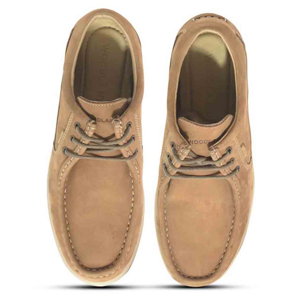 - Designed from durable nubuck the camel slip-on shoe for men features three-eyelet detail and has rubberised foam insole that puts comfort under every step. The slip-on shoe for men is set on flexible rubber outsole that has moderate traction on it and is finished with top-stitch details and Woodland branding on tongue.