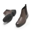 - The classic black Chelsea boots come in a soft leather construction and is set on a low stacked heel. The boots feature a rubber outsole that has moderate traction on it, soft leather foot bed, and stretchy gore inserts on both side.