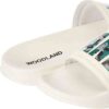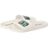 - A contoured footbed offers superior comfort in a lightweight turquoise slide sandal made from flexible EVA.
