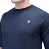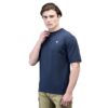 - Give your casual look a fresh feel with the relaxed fit of this blue/navy polo t-shirt from Woods. Crafted from cotton elastane blend the polo t-shirt for men is soft on skin, durable and maximizes comfort. The polo t-shirt for men features embroidered logo on chest, straight hemline, two button at placket, and contrast ribbed detail on color, sleeve and placket.