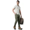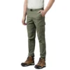 - Side cargo pockets enhance the utilitarian features of a slim-fitting cargo trousers made from cotton spandex blend. The olive cargo for men stand with push-clip closure, zippered front, side pockets, and drawstrings on ankle.